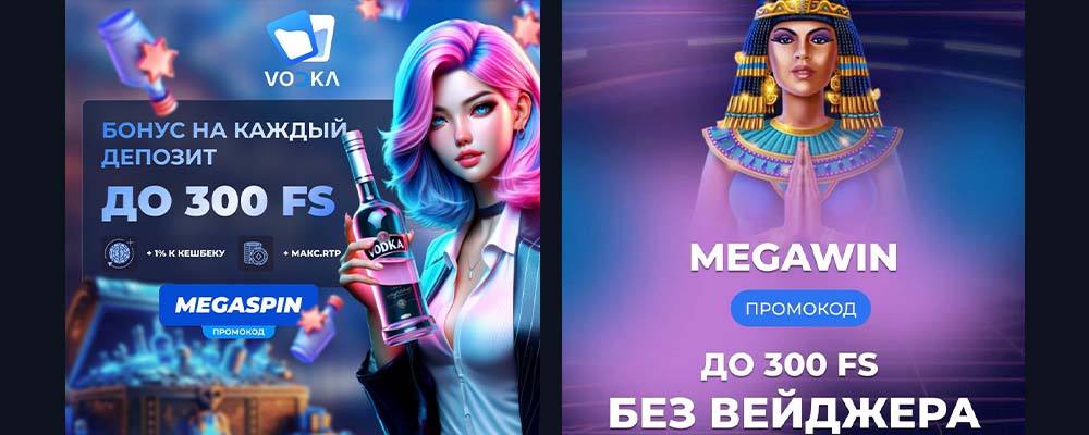 Бонус от администрации Vodka казино может получить только зарегистрированный игрок. В списке актуальных поощрений встречаются разные промо, в том числе: